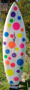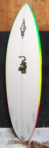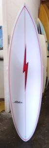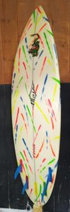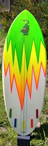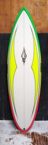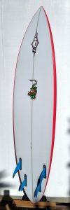 My boards also have softer, tucked rails, making them smooth and maneuverable to free-up my super fast bottom. The full concave transitions to double concave with a speed spot between your feet, to a slight ‘V’ in the tail. This tried and true bottom with a unique fin placement and special fin angle is unlike any other manufacturer in the industry… secret formula.