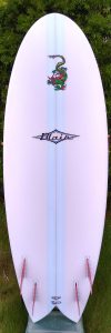 This board is the ultimate small wave basher. It’s state of the art design covers 80% of surfing, from waist high to 2′ overhead. It can be blown up for the biggest XXL guy that rides a 10′ log and wants to ride a “shortboard”.