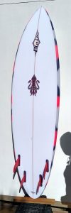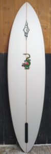 The bottom is a single to double concave with ‘V’ on the tail with low rocker. Joe Blair is a pioneer in quads. He has been shaping and refining this model for the last 25 years.
