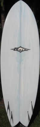 The typical wide swallow tail is flintstone. The straight bottom with the straight tail lines and hard rails, makes a fish dig the rails and spins out.